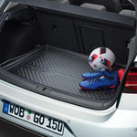 Enhance the interior with the genuine Volkswagen all-weather floor mat and bootliner bundle, meticulously crafted for a perfect fit for the Golf Hatch and lasting durability. Engineered to withstand daily wear and tear, these accessories are both washable and non-slip, ensuring a clean and secure environment for every trip. Made from 100% recyclable materials, this eco-friendly bundle not only protects your Golf but also the environment.