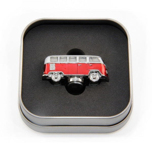A cool VW Bus 3D mini model that enchants the hearts of every retro fan. Whether used as a magnet, paperweight, or on the desk, this mini model is a real eye-catcher. For collectors, it's a great centerpiece in a display case. The magnet is an excellent tool for attaching notes to a bulletin board. This cute accessory is versatile and can be used in many ways. As a paperweight, it's always ready to hit the road. The legendary VW classics represent that era like nothing else. Includes a stylish high-quality metal gift box.