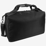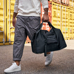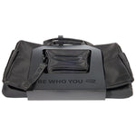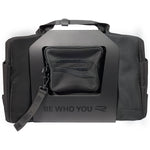 The weekender is packaged in a sleeve with glossy black lettering